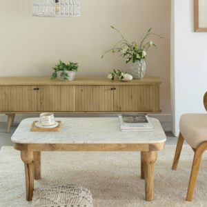 Vandana Elara Astra coffee table in marble and acacia wood