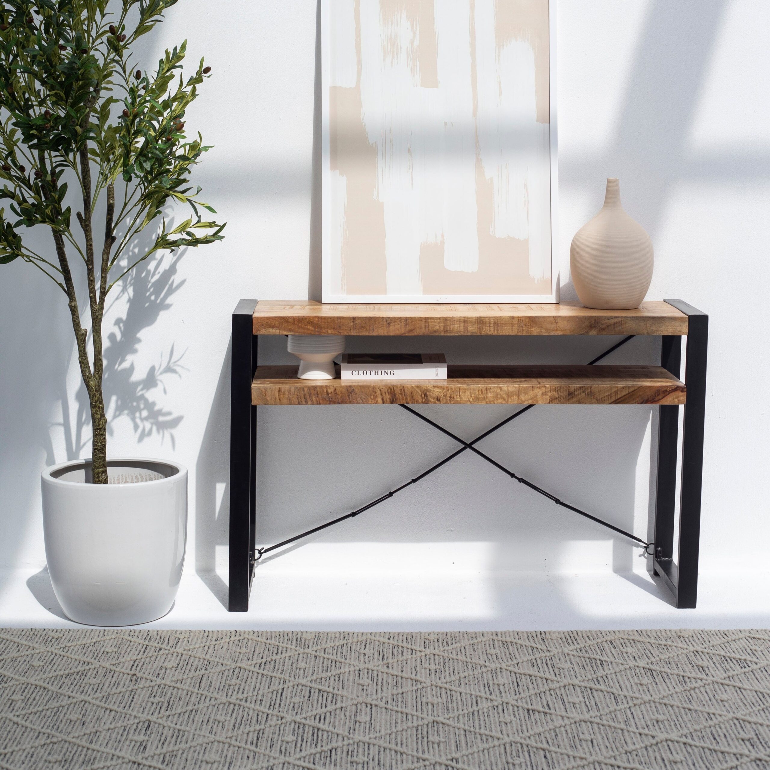The Terra Console’s industrial appeal lies in its raw simplicity and utilitarian charm. Its understated silhouette allows it to complement various décor styles, from urban industrial and rustic farmhouse to Scandinavian and transitional themes. Whether styled with bold metallic accents or paired with soft natural elements, the Terra Console adapts beautifully to diverse design visions.